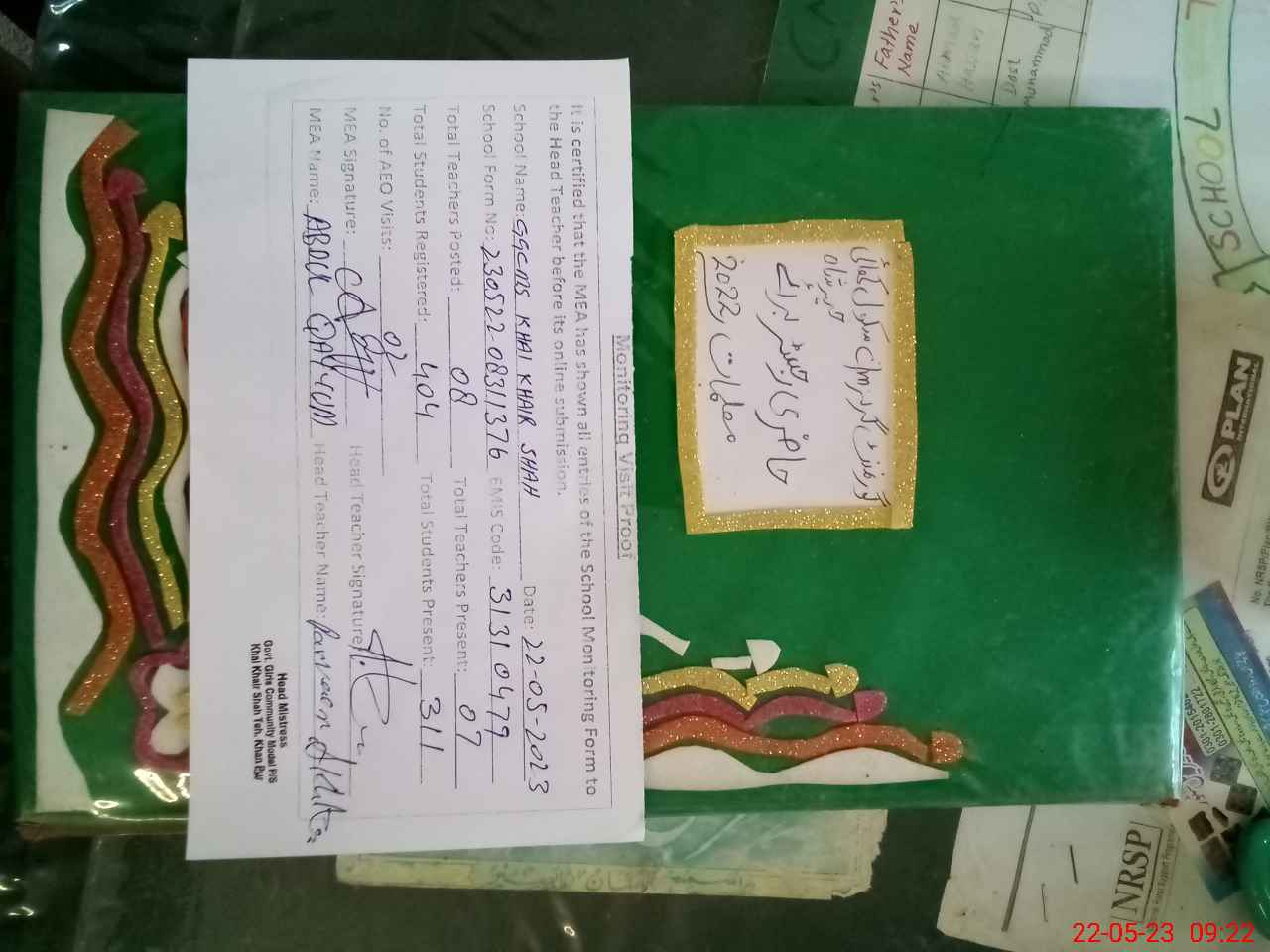 | Attendance Register | Head Teacher | MEA with School | Visit Proof |