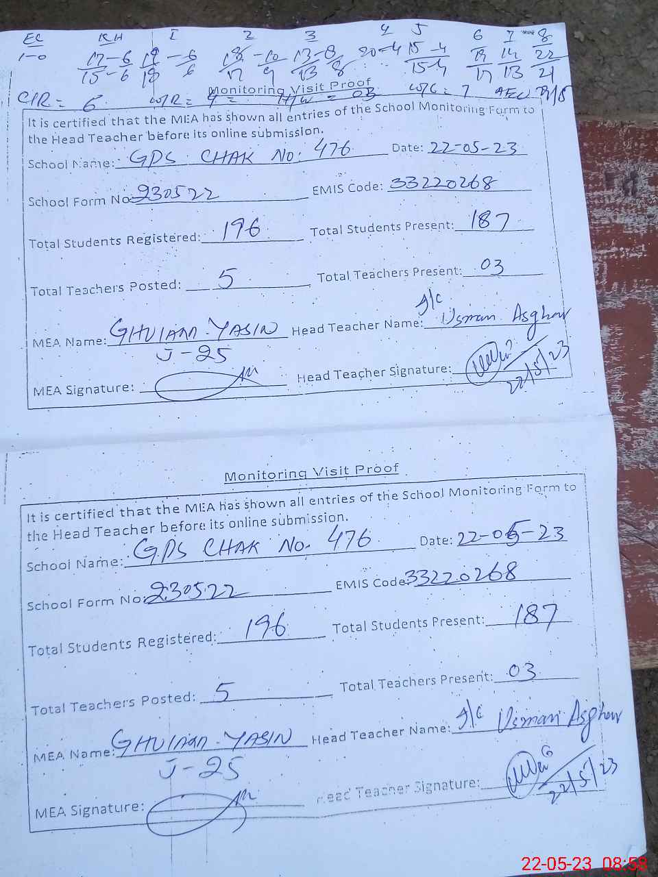 | EMIS Code: 33220268 | Name of School: GPS CHAK NO 476 JB | |||