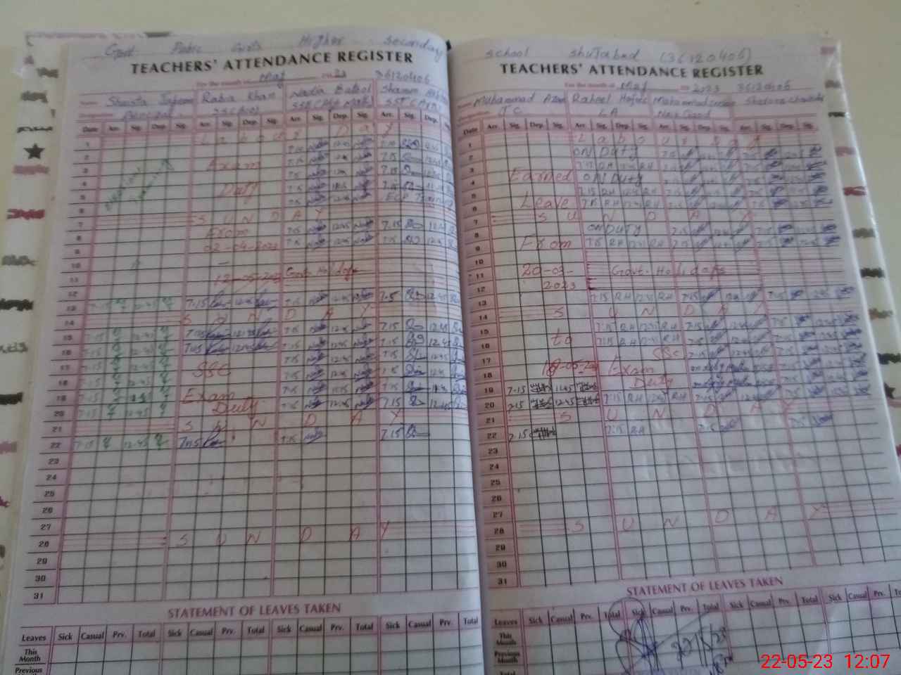 | Leave | Duty | Absent | Maternity | Medical | Ex- Pak |