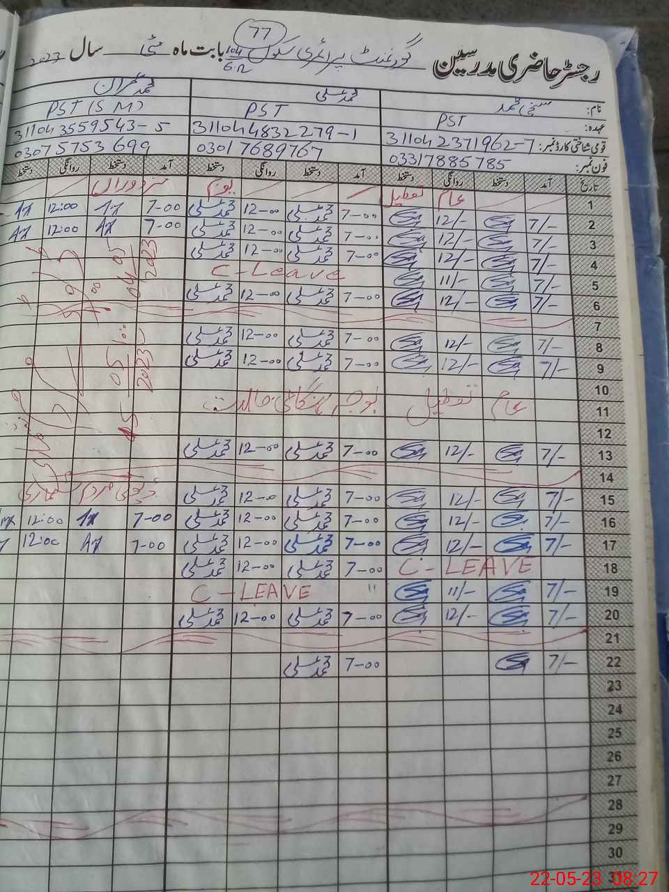 | Name: SA**** MU**** Designation: (School Headmaster's/Headmistress's) PST Phone/Cell Number: 03**** |