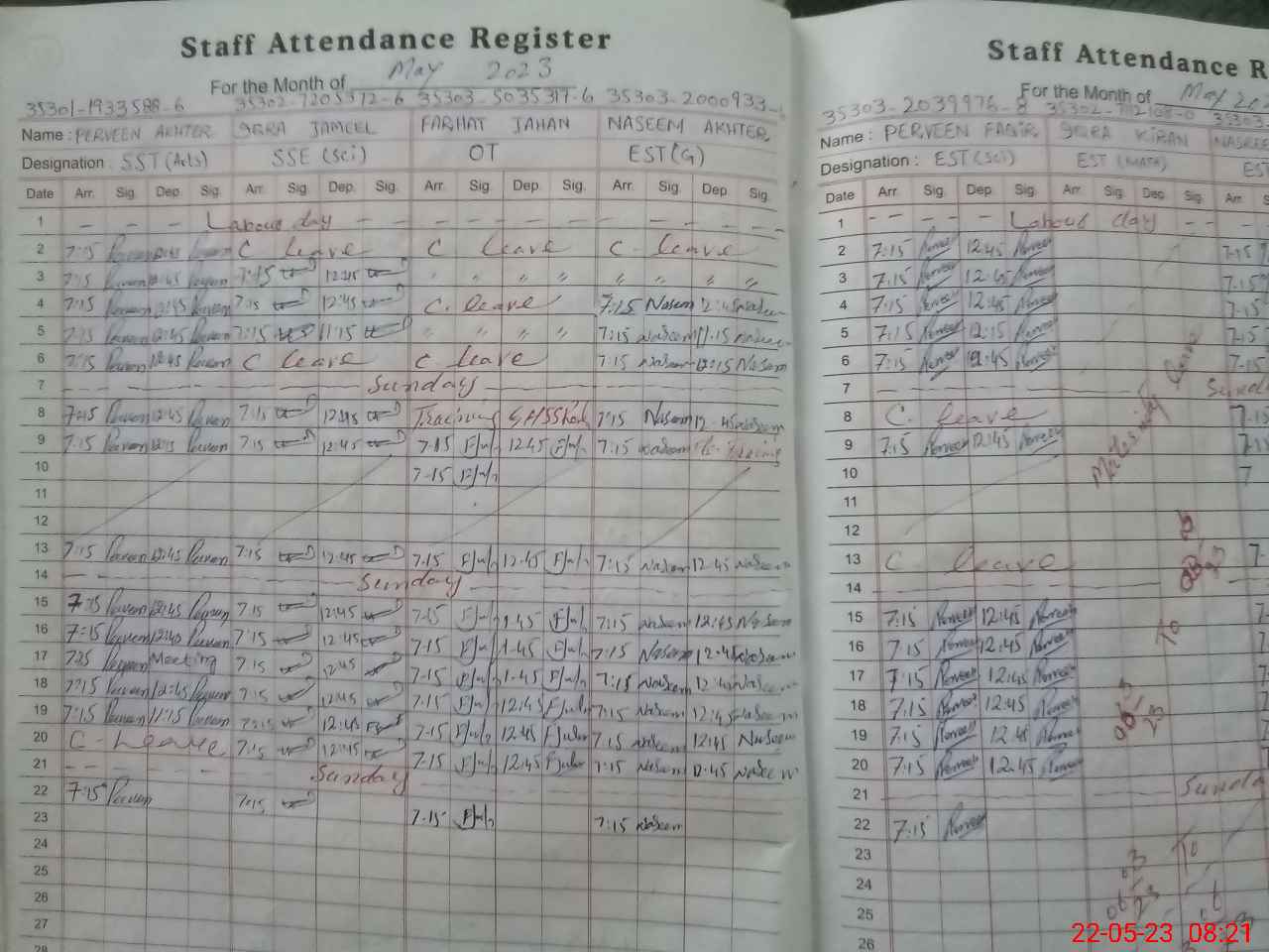| CNIC | Full Name | Designation | R/C | Absence During Last Calender Month |