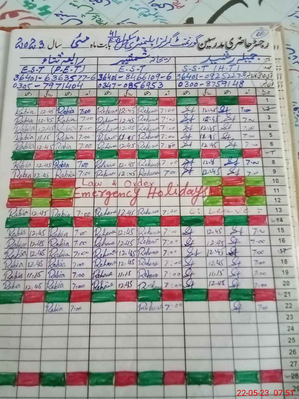 | Name: JA**** RA**** Designation: (School Headmaster's/Headmistress's) SST (GENERAL) Phone/Cell Number: 03**** |