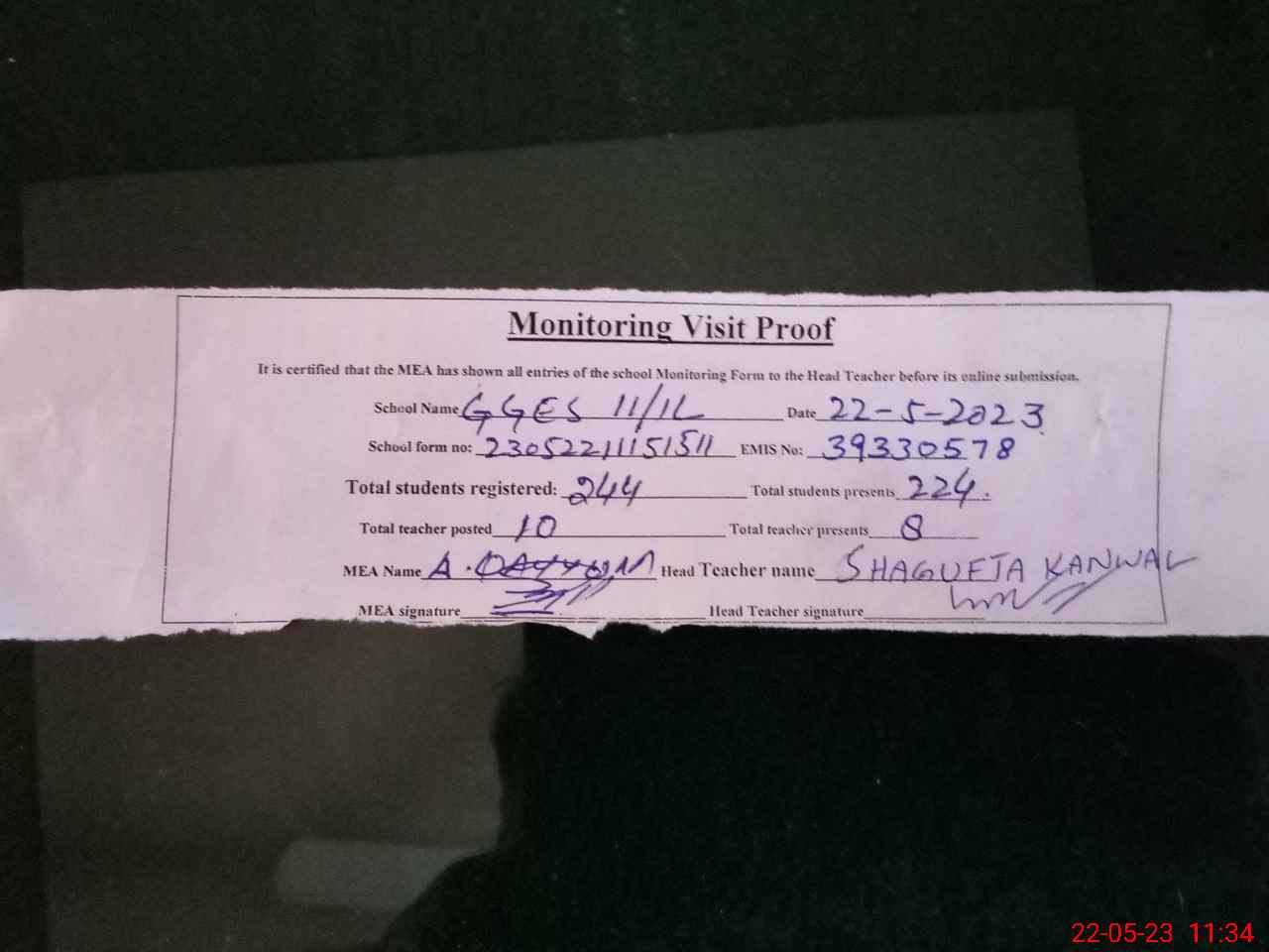 | Name: SH**** KA**** Designation: (School Headmaster's/Headmistress's) SSE EANGLISH Phone/Cell Number: 03**** |