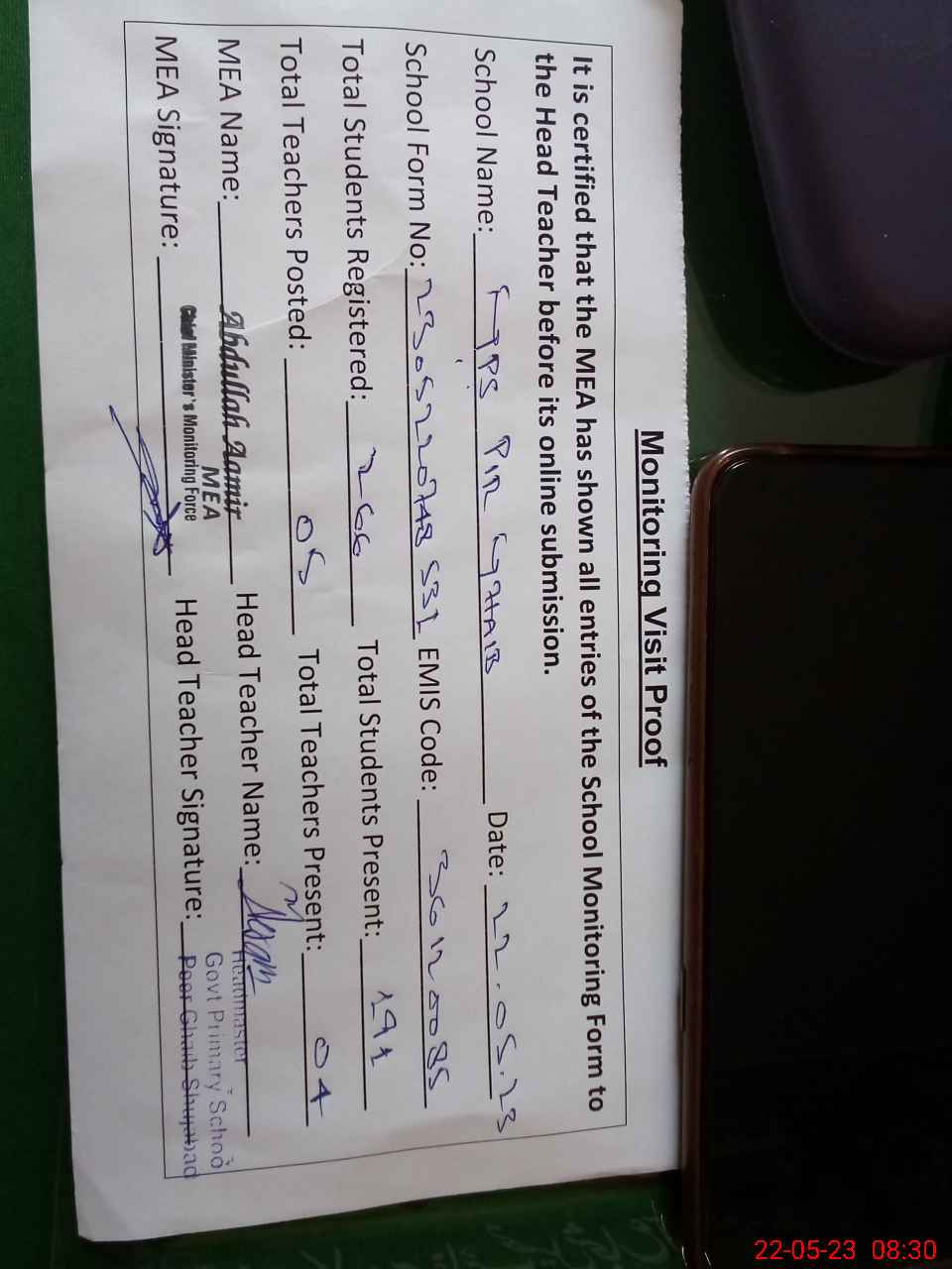 | EMIS Code: 36120085 | Name of School: GPS PIR GHAIB P/O PIR GHAIB MOUZA HILAL WAJEH | |||