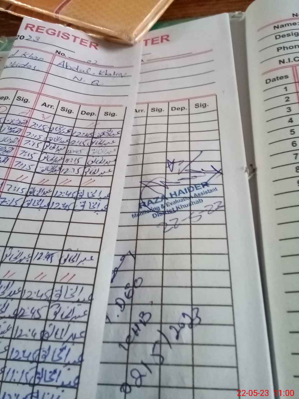 | CNIC | Full Name | Designation | R/C | Absence during last cal. month |
