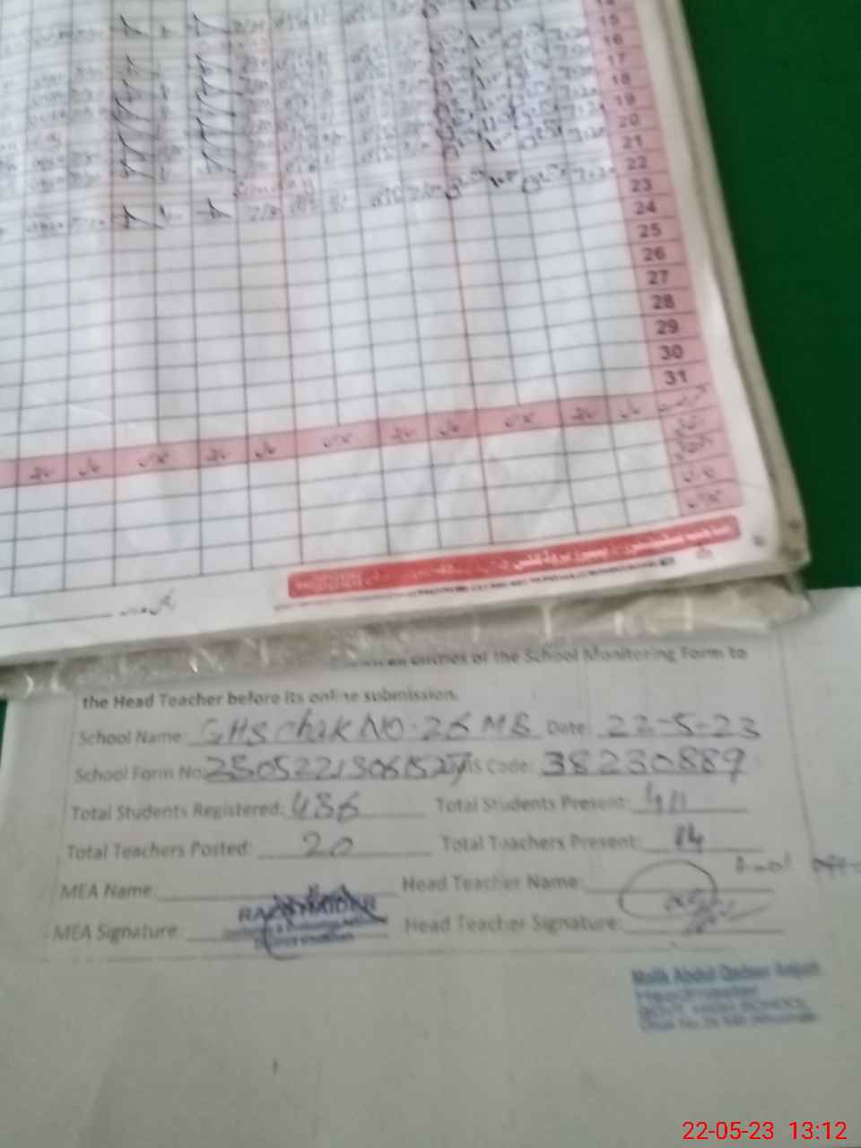 | EMIS Code: 38230889 | Name of School: GHS CHAK NO. 26/MB | |||