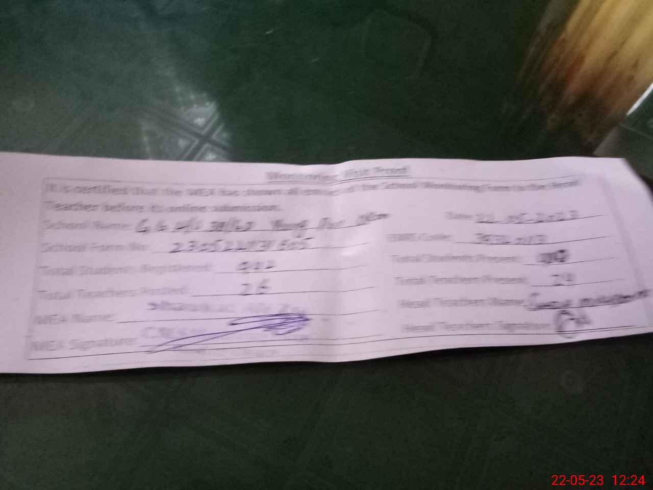 | Certified that this School was Inspected by the Undersigned MEA/DMO Today and the Information Stated Above is as Per Record. | |||||