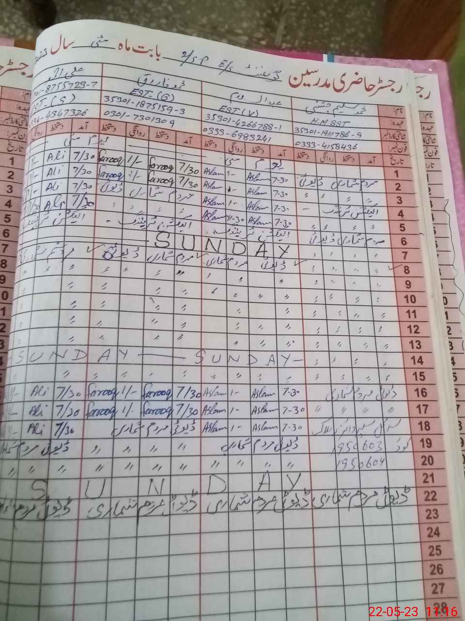 | CNIC | Full Name | Designation | R/C | Absence During Last Calender Month |