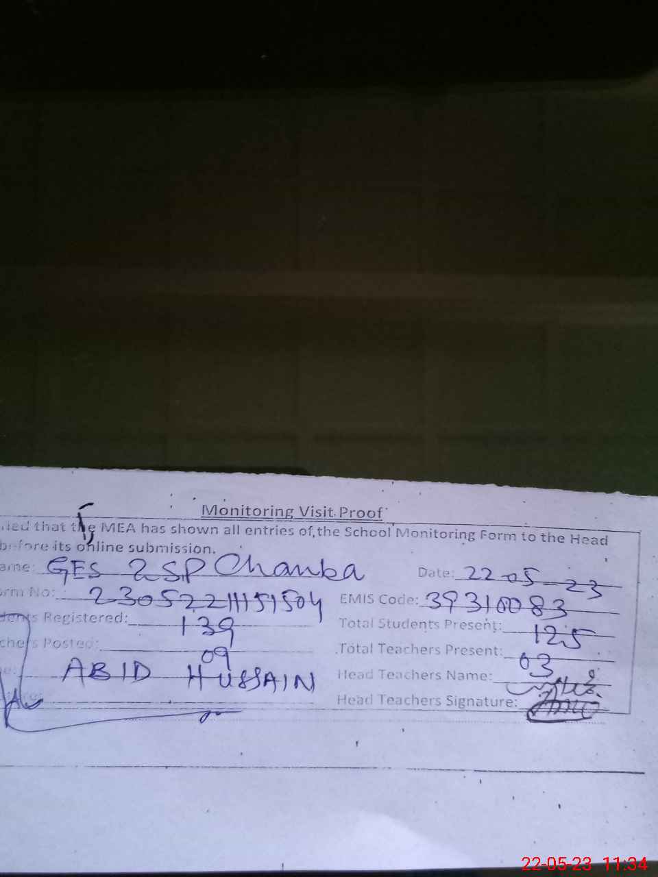 | Name: Ab**** Designation: (School Headmaster's/Headmistress's) EST Phone/Cell Number: 03**** |