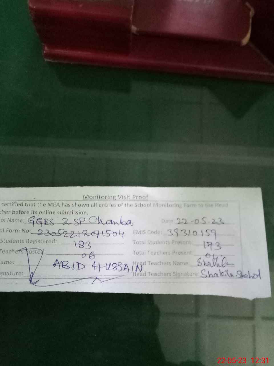 | EMIS Code: 39310159 | Name of School: GGES 2 SP CHANBA | |||