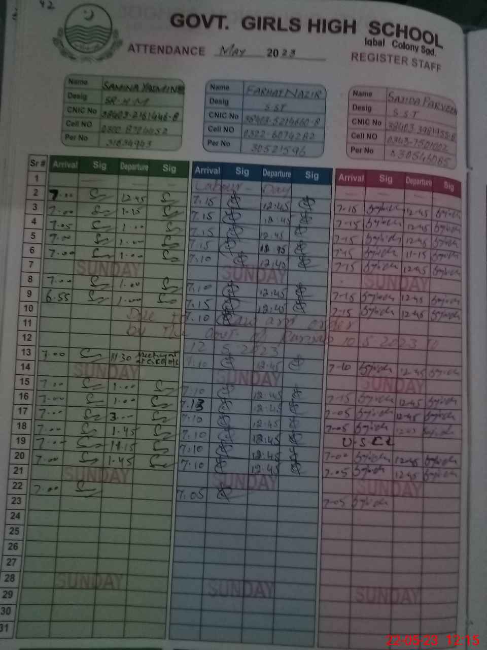 | EMIS Code: 38420222 | Name of School: GGHS IQBAL COLONY SARGODHA | |||