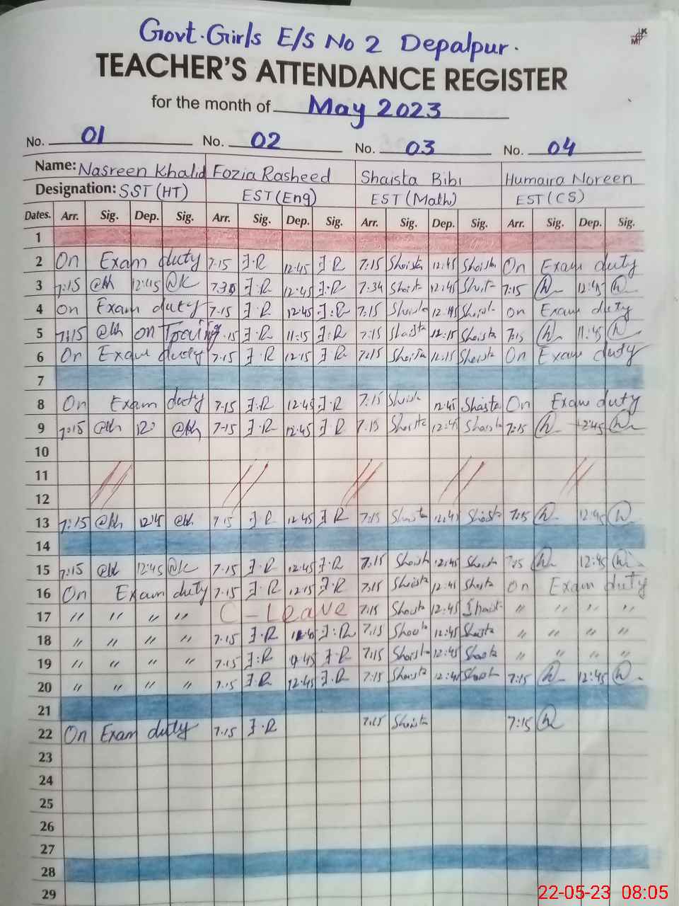 | 35**** | Na**** Kh**** | SST | Regular | 0 | 0 | 0 | 0 | 0 | 0 | 0 | 0 | 0 | Exam Duty |