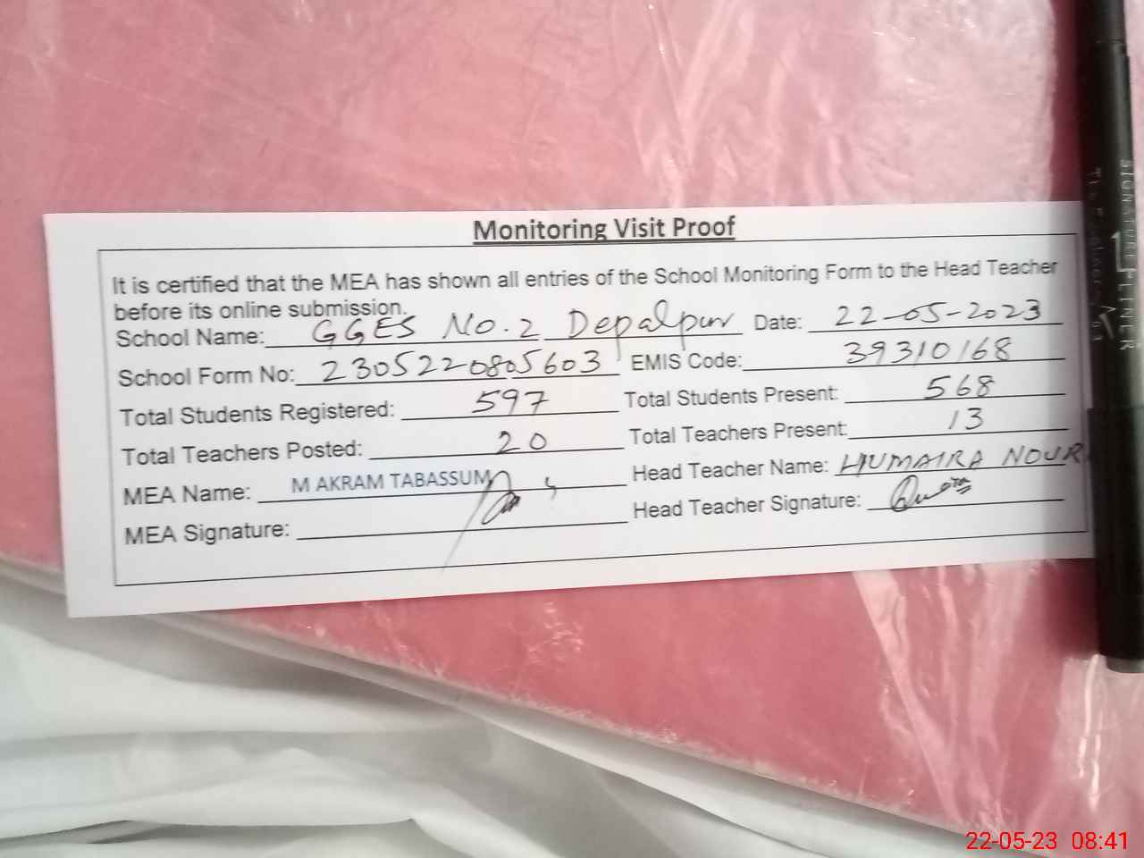 | EMIS Code: 39310168 | Name of School: GGES DEPALPUR NO 2 | |||