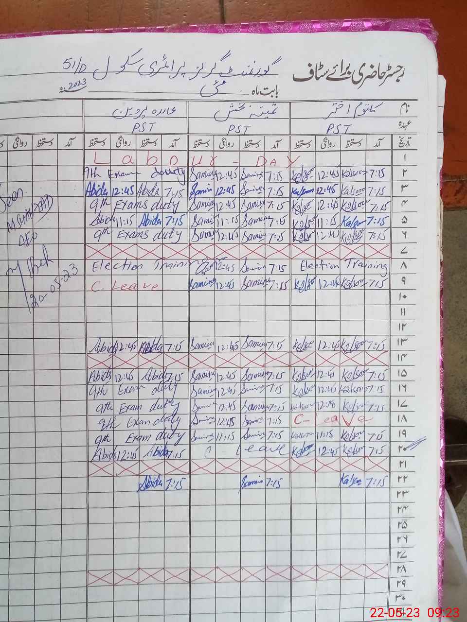 | Leave | Duty | Absent | Maternity | Medical | Ex- Pak |