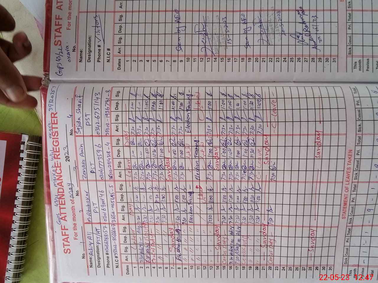 | CNIC | Full Name | Designation | R/C | Absence During Last Calender Month |
