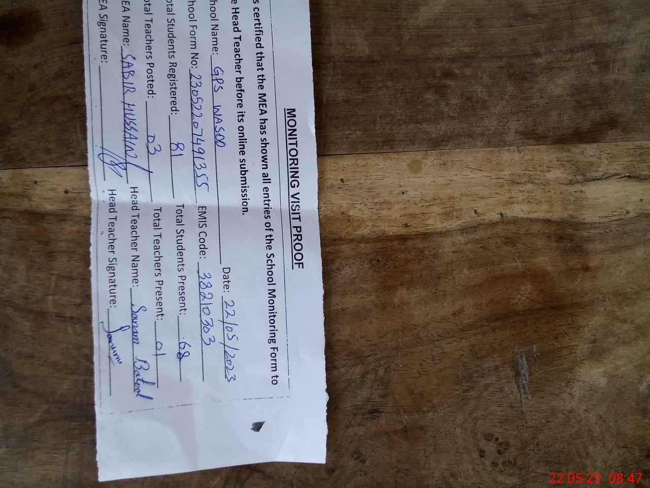 | EMIS Code: 38210303 | Name of School: GPS WASOO | |||