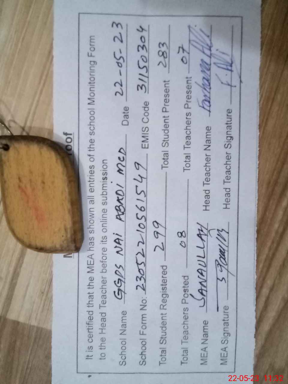 | Attendance Register | Head Teacher | MEA with School | Visit Proof |