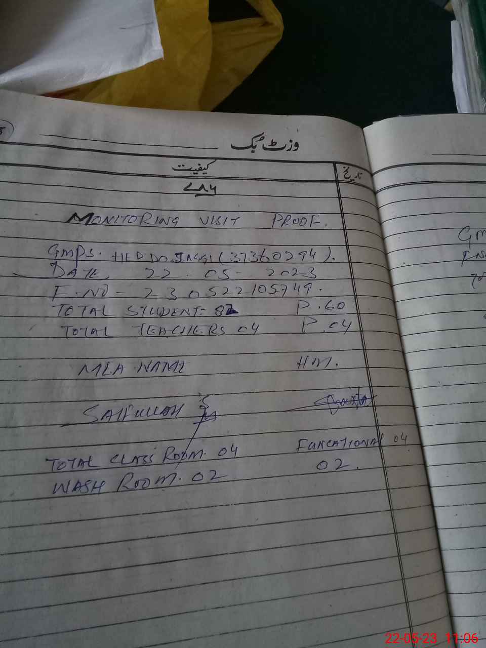 | Monitoring Date: 22-05-2023 | Start Time: 22-05-2023 10:44 AM | End Time: 22-05-2023 11:06 AM | Name of MEA: Sa**** | |