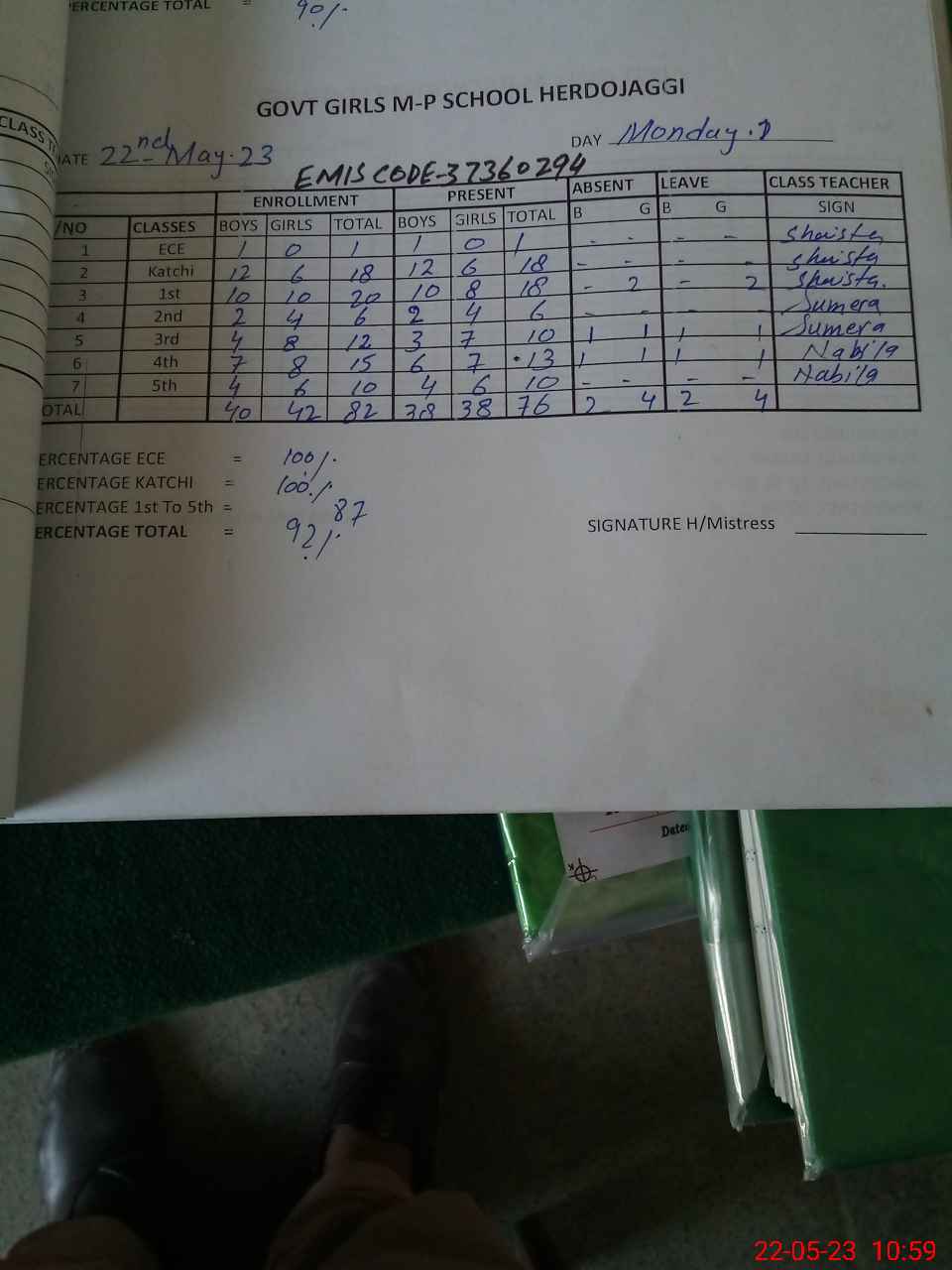 | Attendance Register | Head Teacher | MEA with School | Visit Proof |