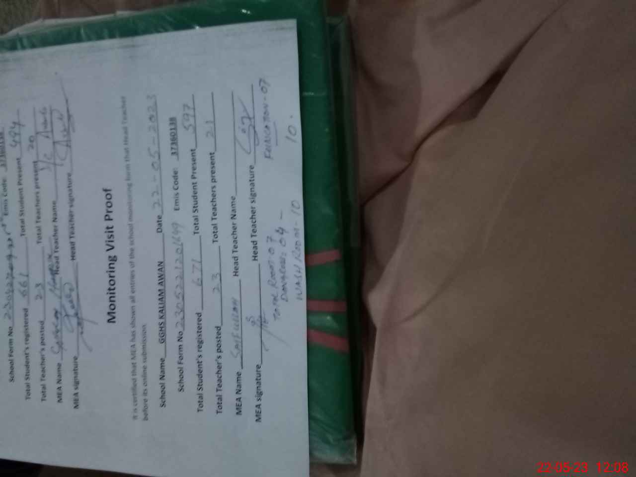 | Attendance Register | Head Teacher | MEA with School | Visit Proof |