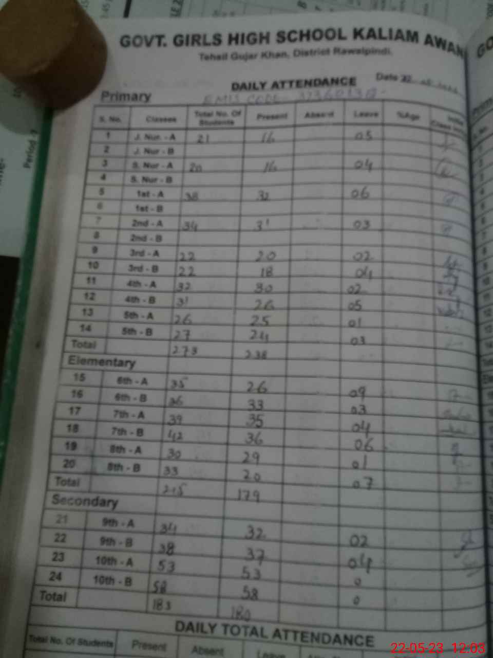 | District: RAWALPINDI | Tehsil: GUJAR KHAN | Markaz: SECONDARY-WING | Level: High | |