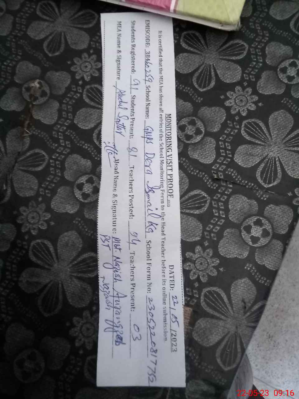 | EMIS Code: 38460259 | Name of School: GMPS DERA ISMAIL KA | |||