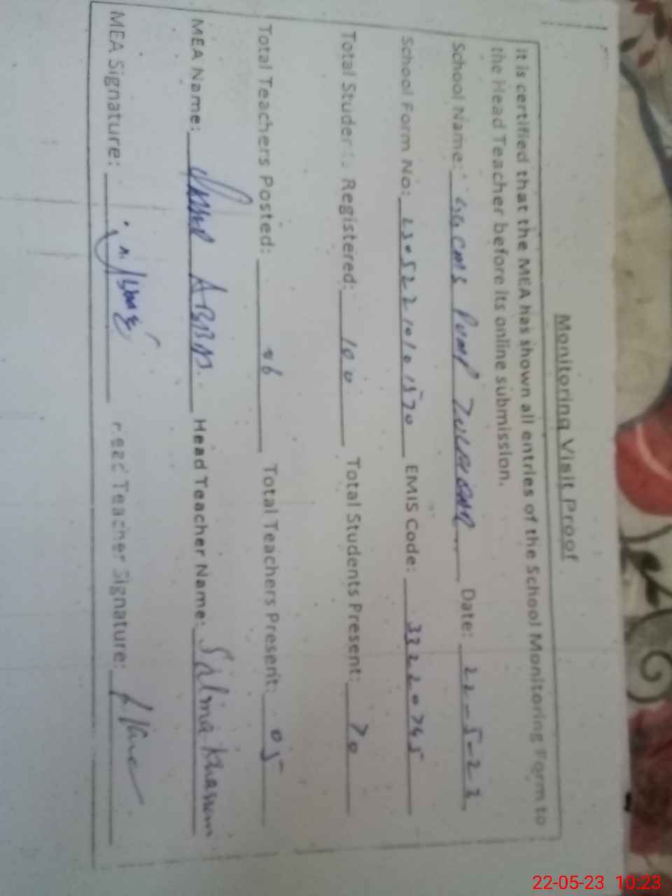 | EMIS Code: 33220745 | Name of School: GGCMS PUMP ZULFIQAR | |||