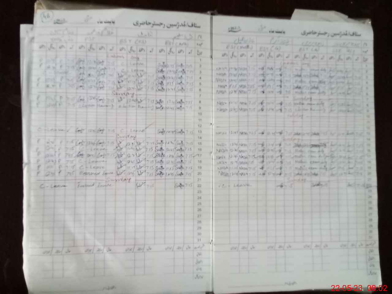 | CNIC | Full Name | Designation | R/C | Absence During Last Calender Month |