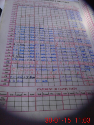| CNIC | Full Name | Designation | R/C | Absence During Last Calender Month |