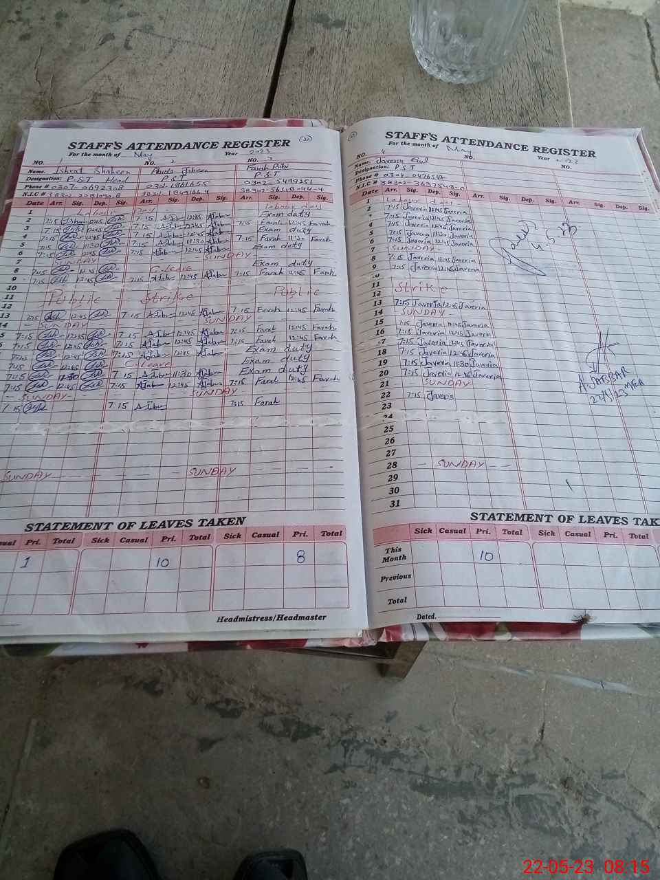 | Name: Is**** Sh**** Designation: (School Headmaster's/Headmistress's) Ese sc Phone/Cell Number: 03**** |