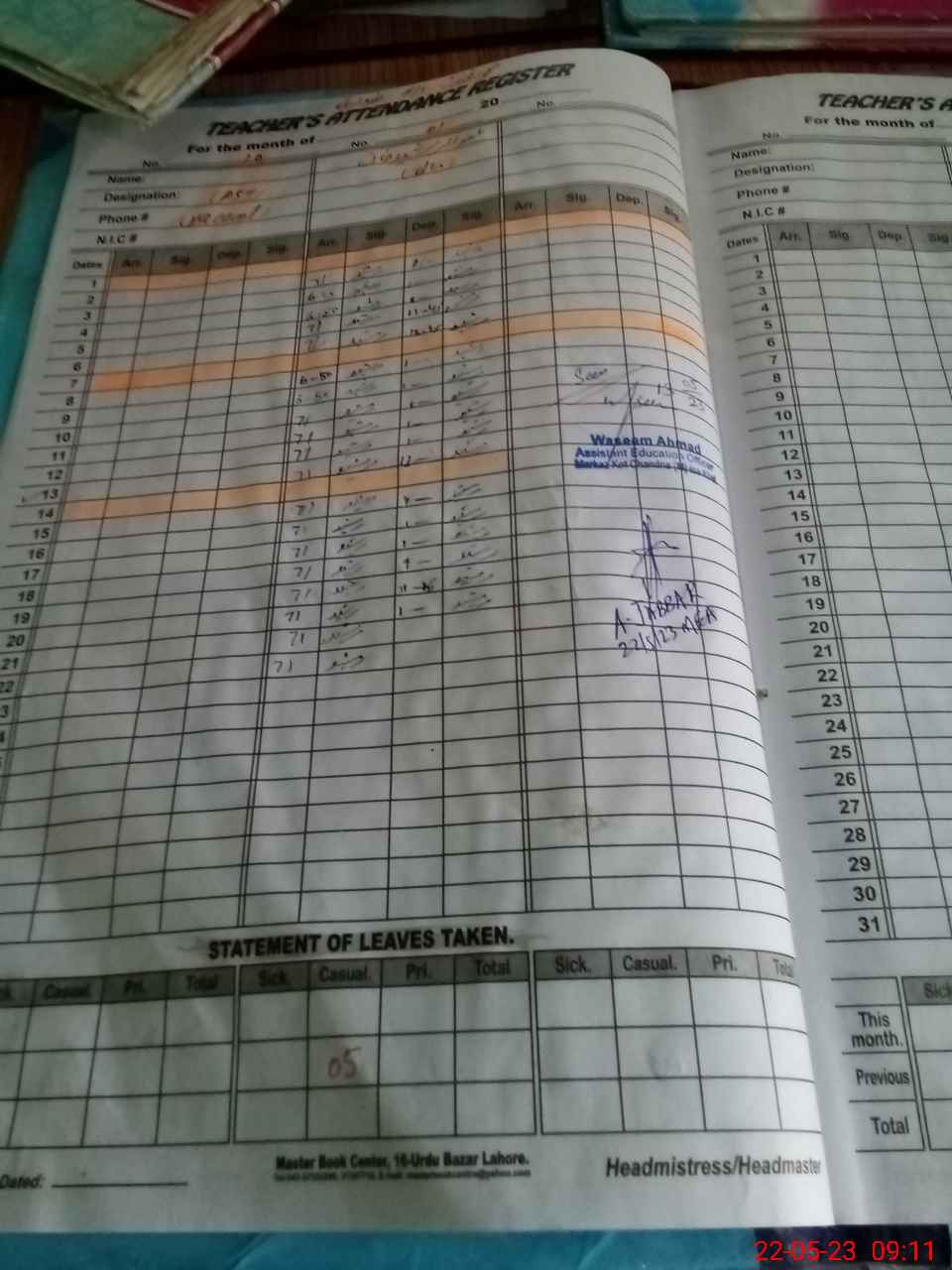 | Total no. of Classrooms: 14 No. of Classrooms Used for Teaching: 11 No. of Classrooms Storing Old Furniture, FTBs, etc: 0Comments if Any: Est Muhammad din on c leave but leave not on sis |
