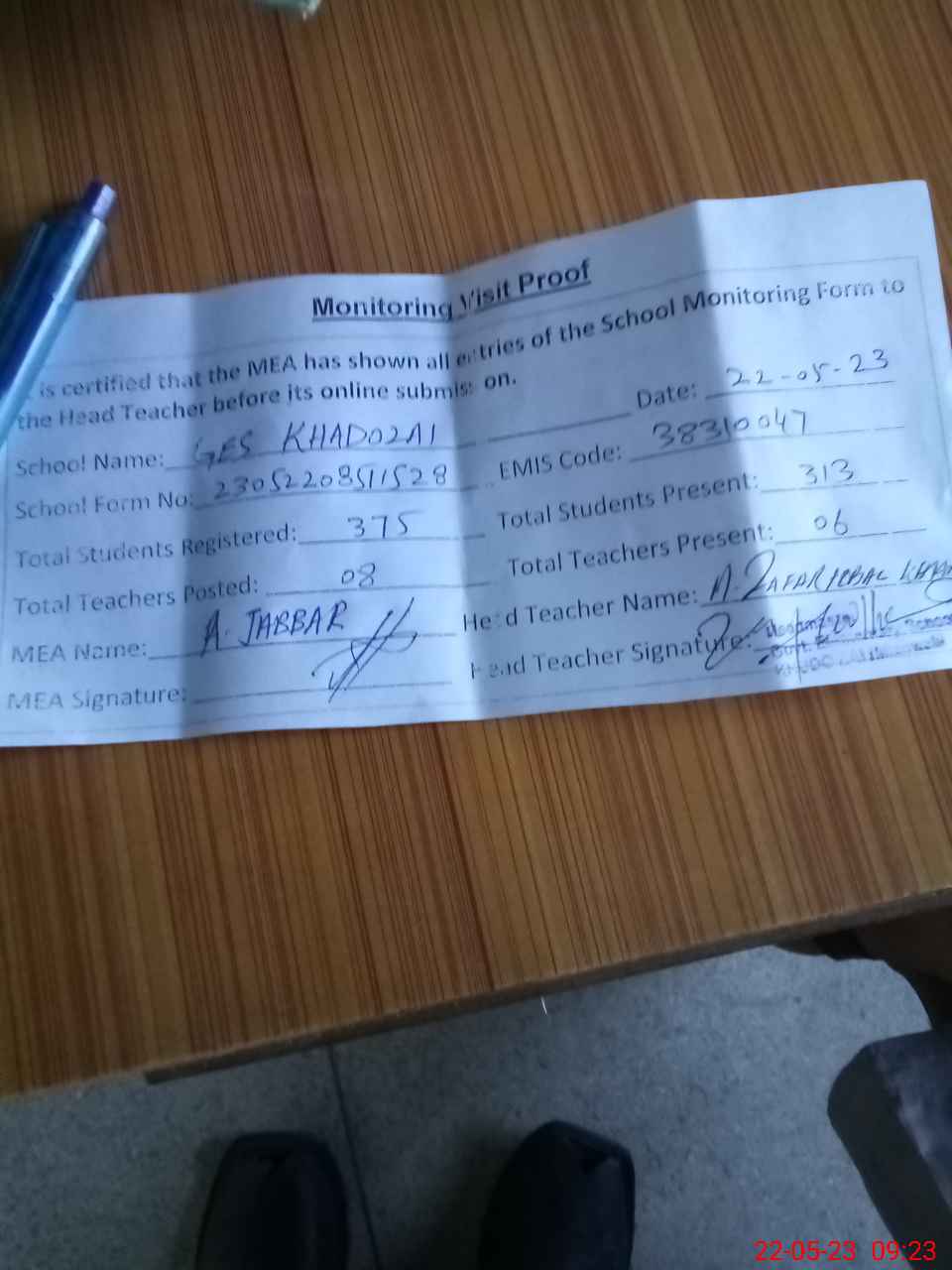 | EMIS Code: 38310047 | Name of School: GES KHUDOZAI | |||
