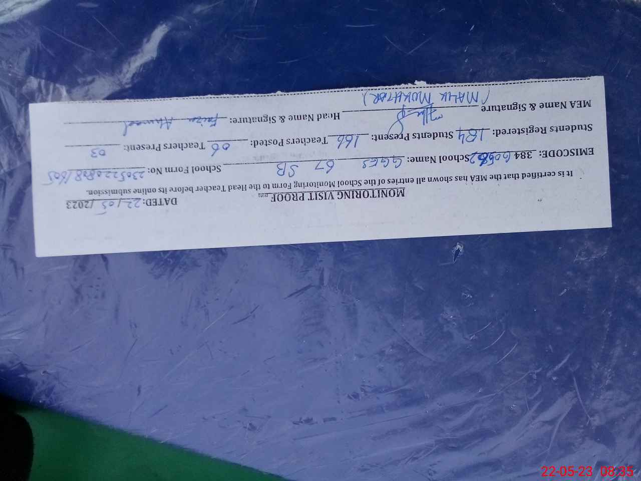 | Certified that this School was Inspected by the Undersigned MEA/DMO Today and the Information Stated Above is as Per Record. | |||||