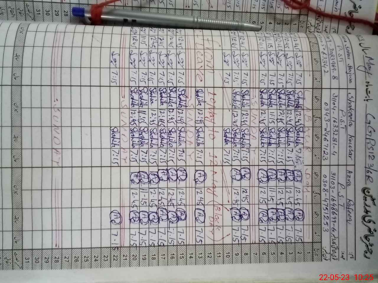 | CNIC | Full Name | Designation | R/C | Absence During Last Calender Month |