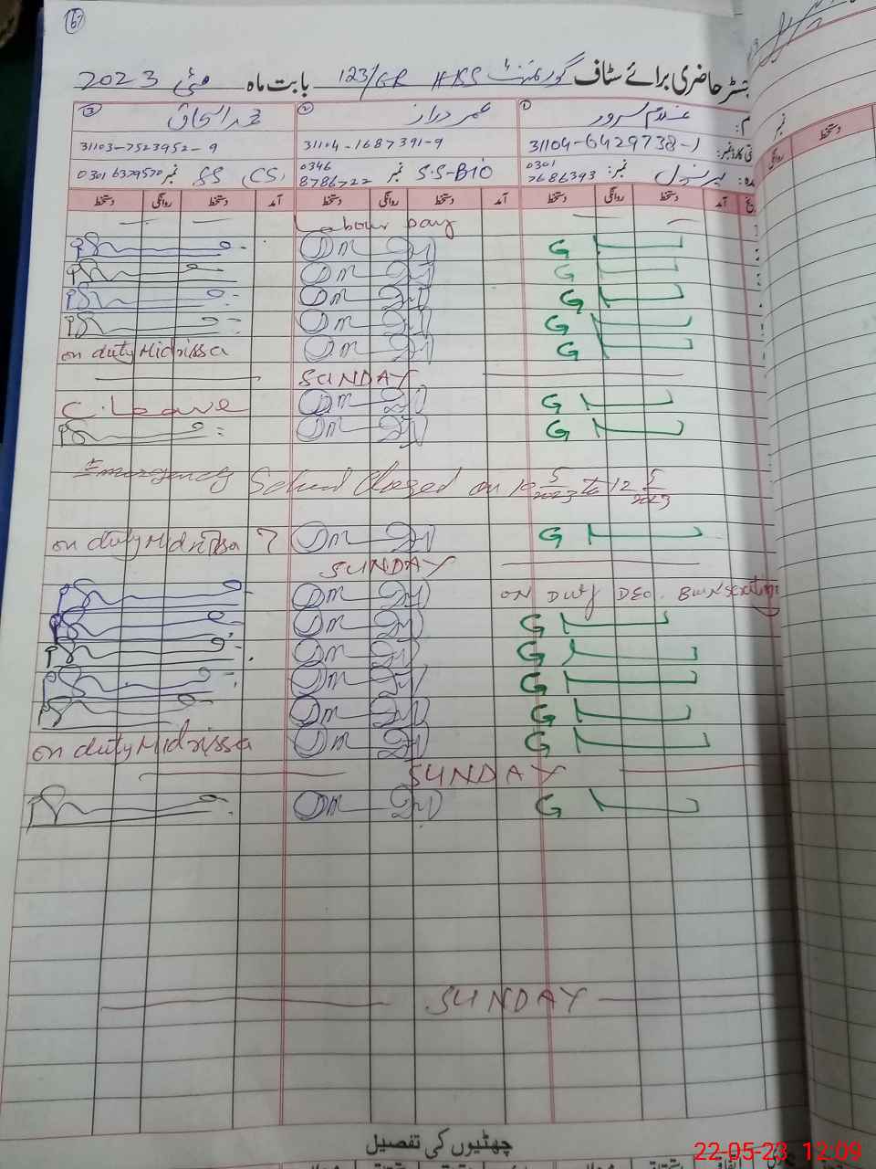 | CNIC | Full Name | Designation | R/C | Absence During Last Calender Month |