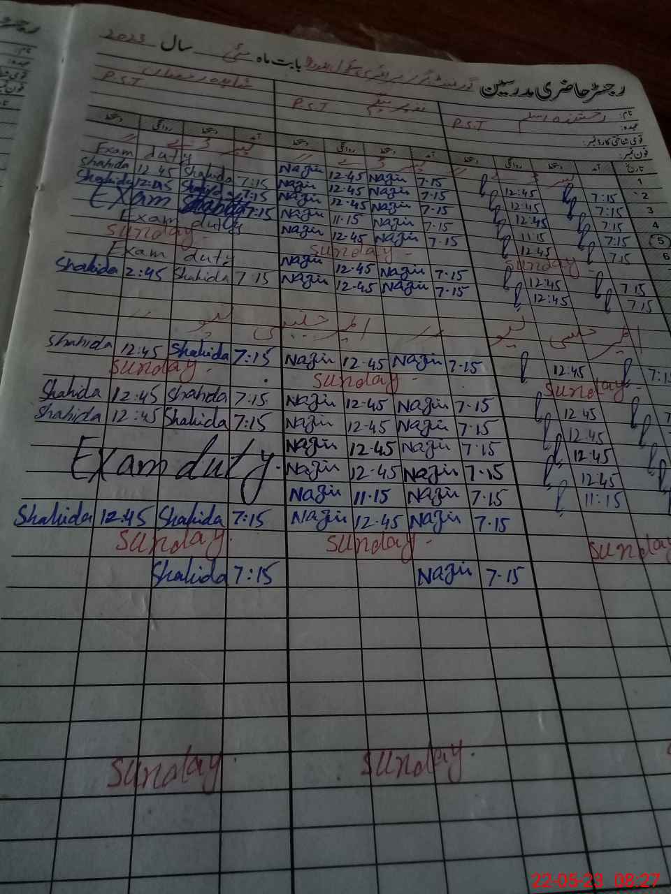 | CNIC | Full Name | Designation | R/C | Absence During Last Calender Month |