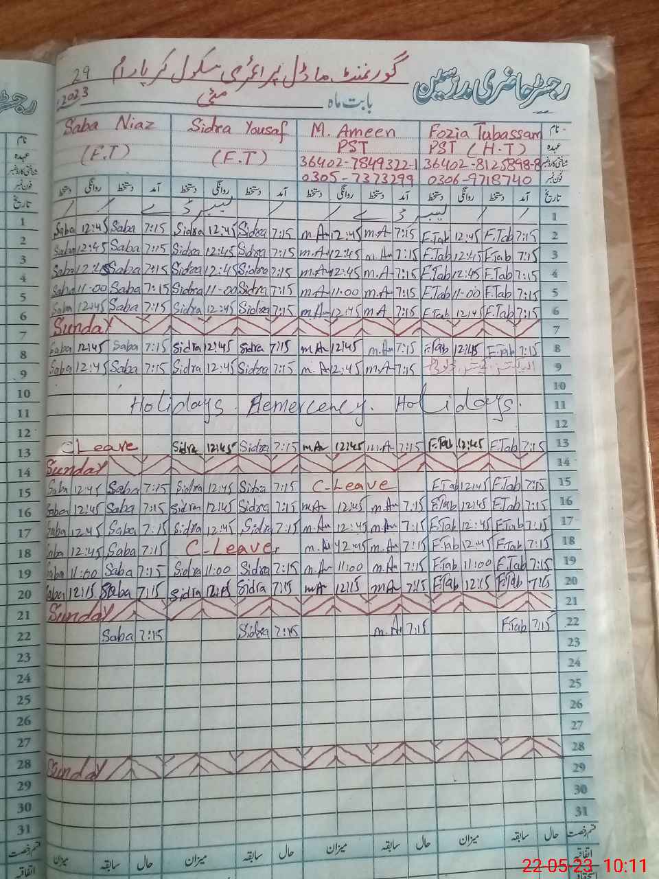 | Leave | Duty | Absent | Maternity | Medical | Ex- Pak |