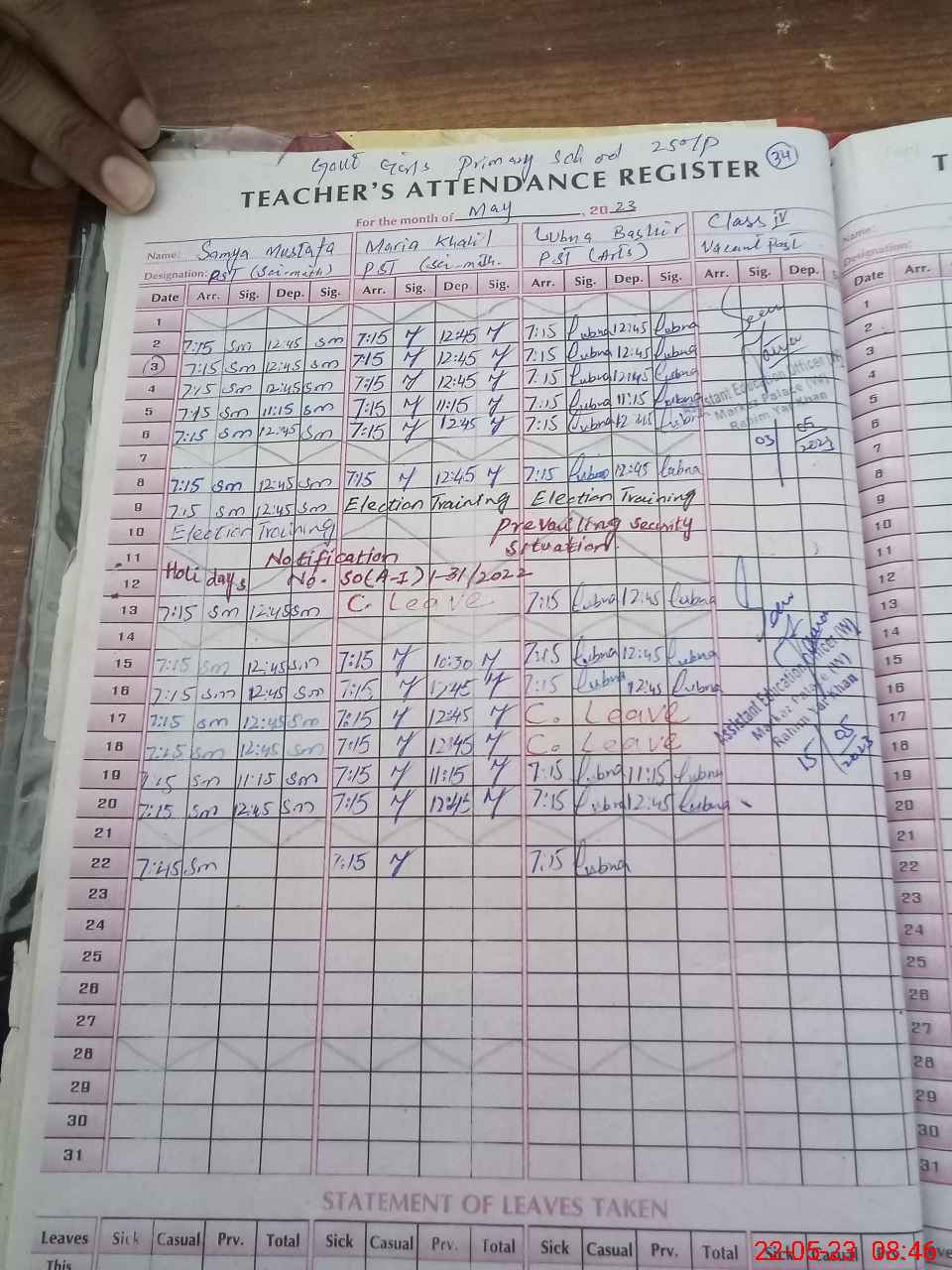| Leave | Duty | Absent | Maternity | Medical | Ex- Pak |