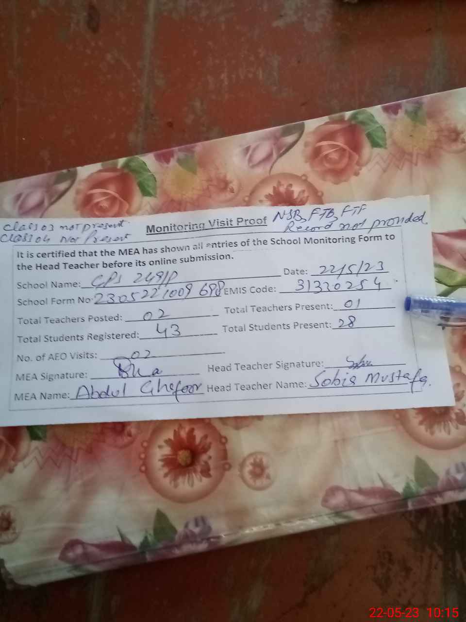 | EMIS Code: 31330254 | Name of School: GPS CHAK 249/P | |||