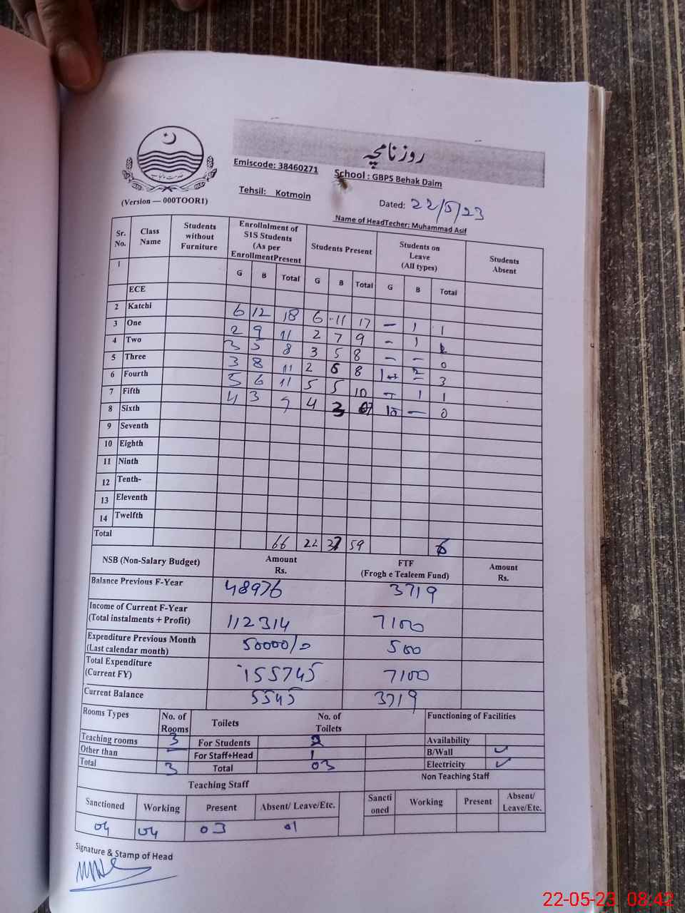 | Name: Mu**** AS**** Designation: (School Headmaster's/Headmistress's) PST Phone/Cell Number: 03**** |