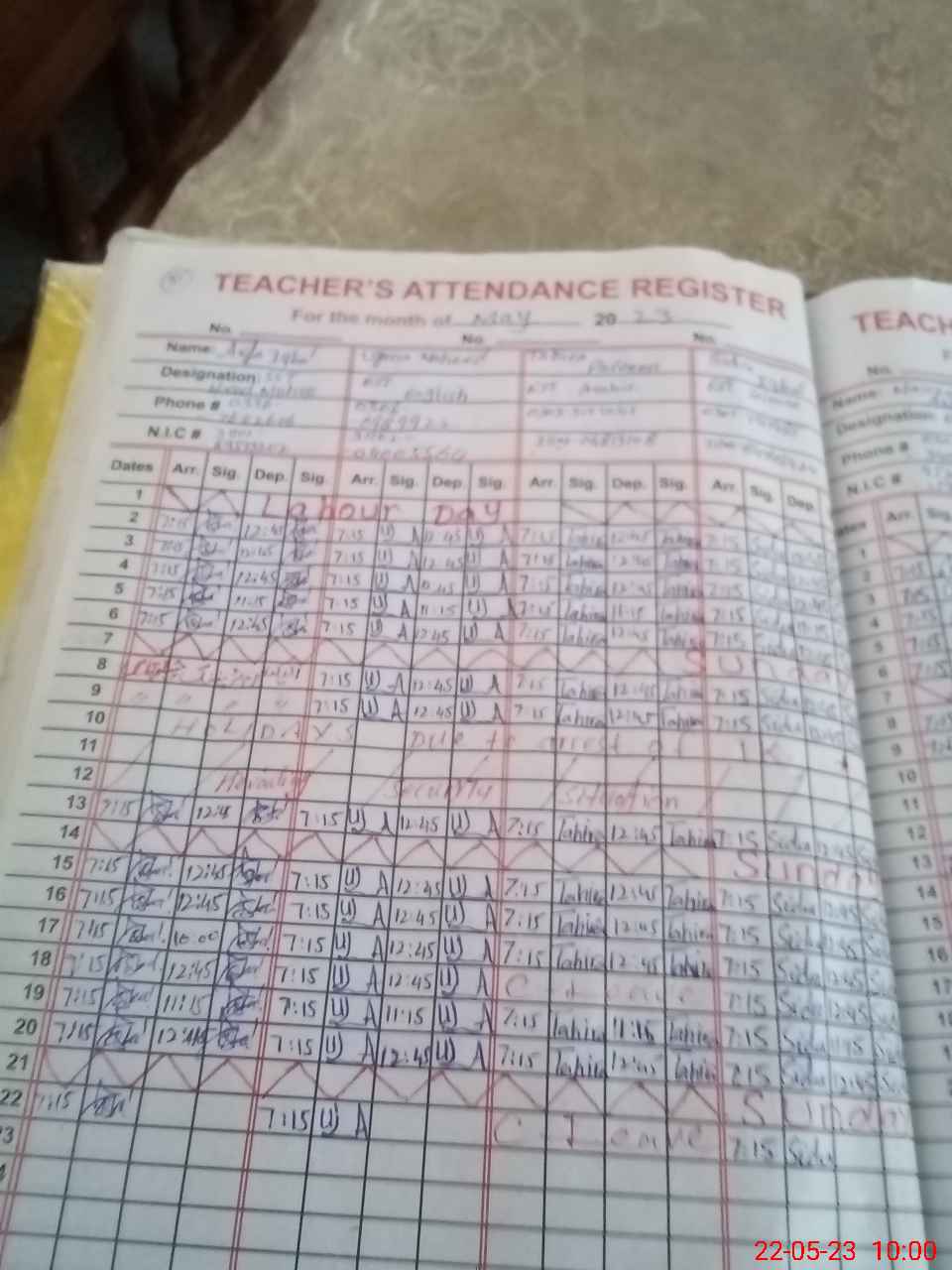 | Name: Ar**** Iq**** Designation: (School Headmaster's/Headmistress's) S.S.T Phone/Cell Number: 03**** |
