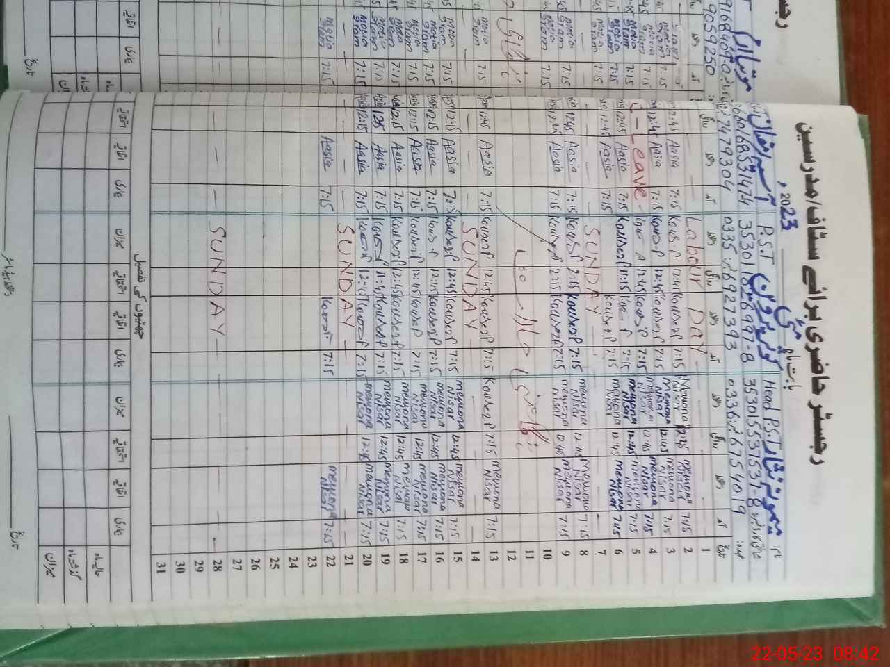 | CNIC | Full Name | Designation | R/C | Absence During Last Calender Month |