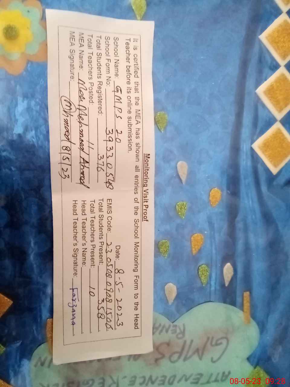 | EMIS Code: 39330548 | Name of School: GMPS 20 A-2L (ALEEM TOWN) | |||