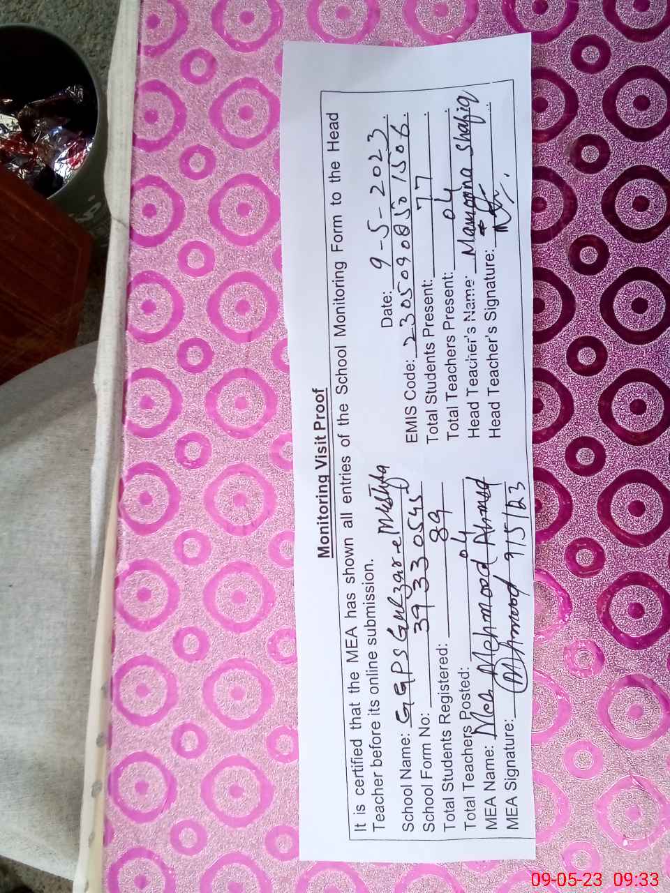 | EMIS Code: 39330545 | Name of School: GGPS GULZAR E MUSTAFA | |||