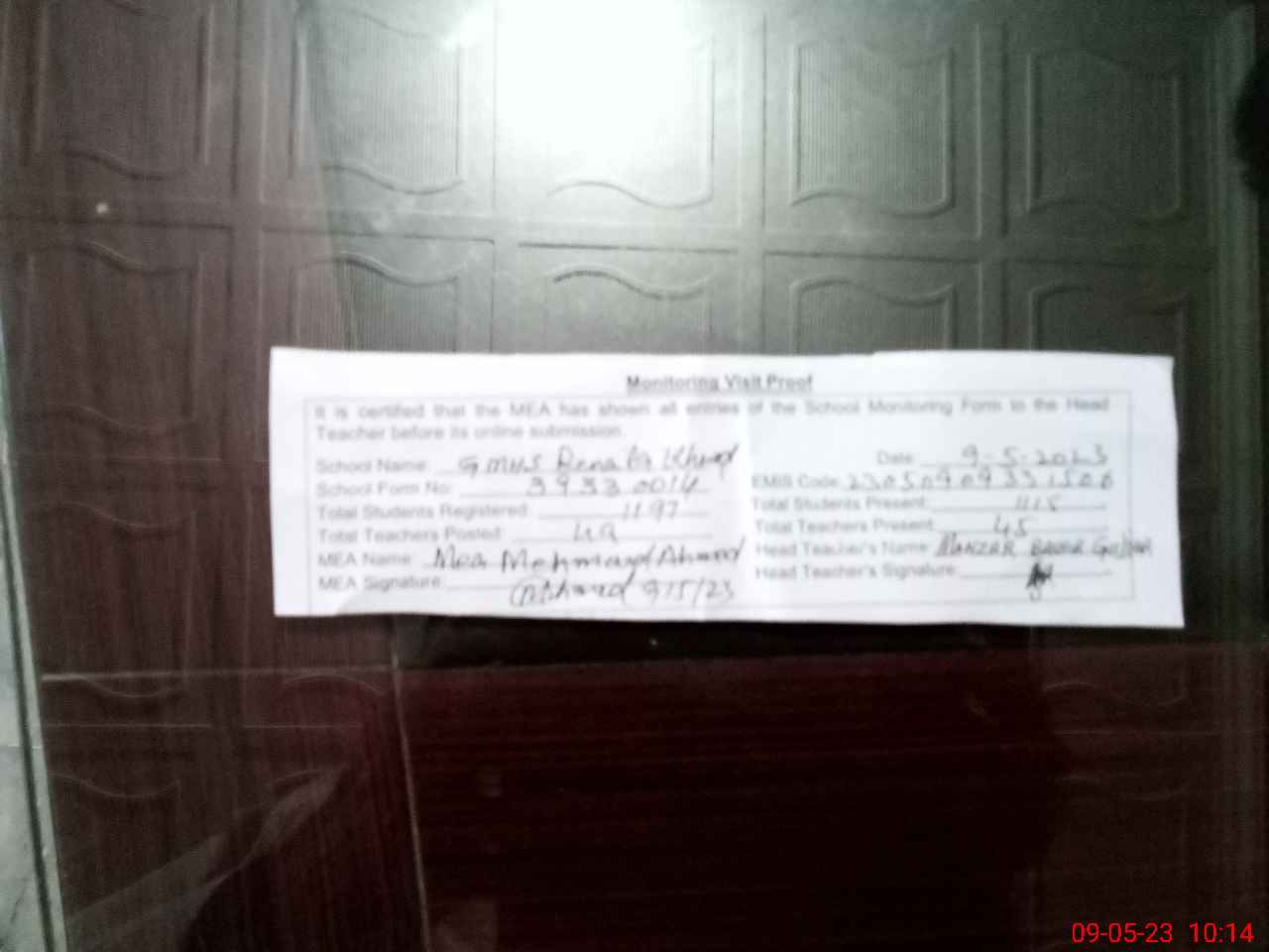| Certified that this School was Inspected by the Undersigned MEA/DMO Today and the Information Stated Above is as Per Record. | |||||