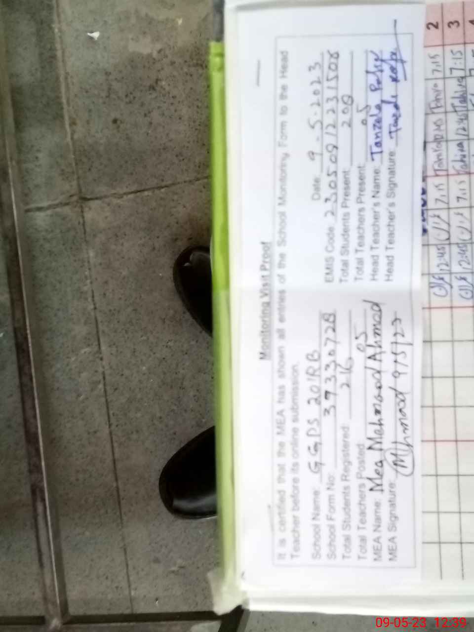 | Attendance Register | Head Teacher | MEA with School | Visit Proof |