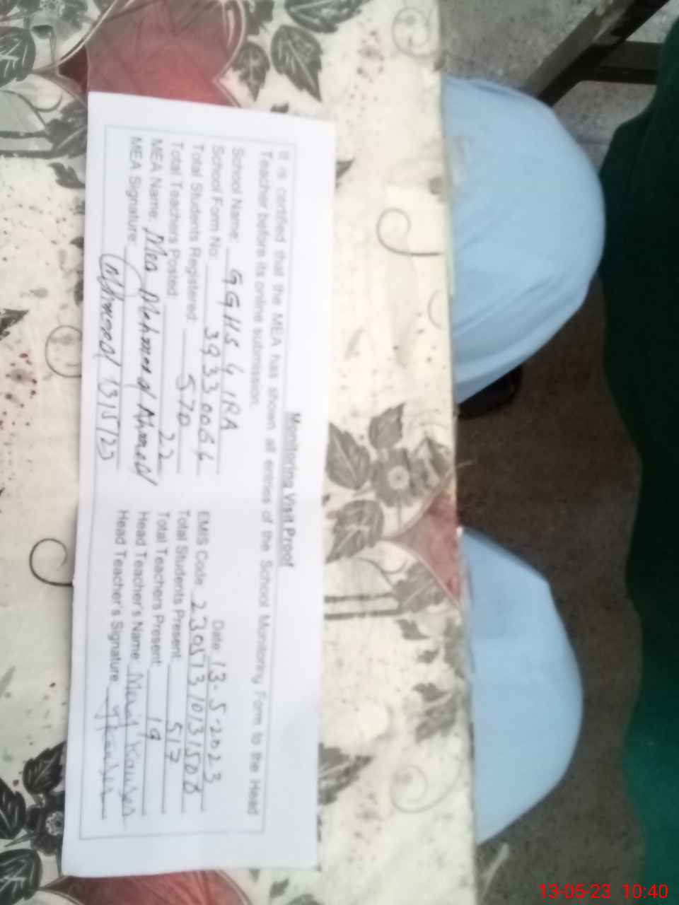 | Monitoring Date: 13-05-2023 | Start Time: 13-05-2023 10:13 AM | End Time: 13-05-2023 10:40 AM | Name of MEA: ME**** AH**** | |