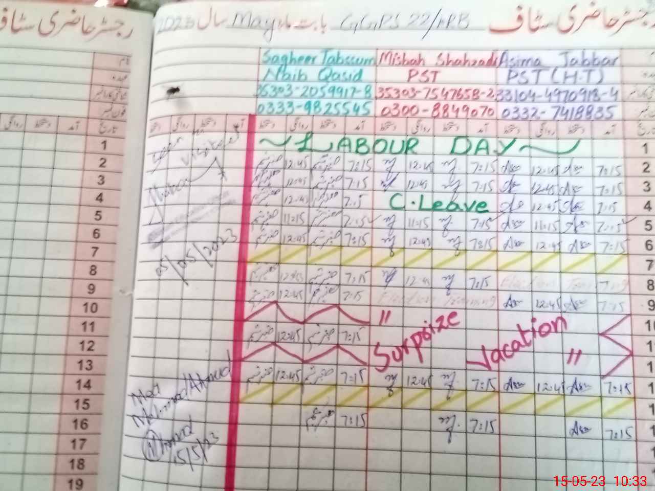 | CNIC | Full Name | Designation | R/C | Absence During Last Calender Month |
