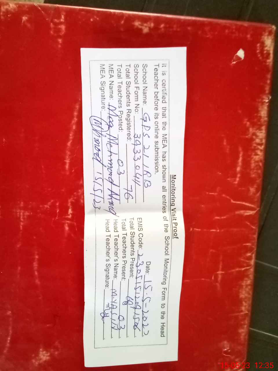 | EMIS Code: 39330411 | Name of School: GPS CHAK NO. 21/1-RB | |||