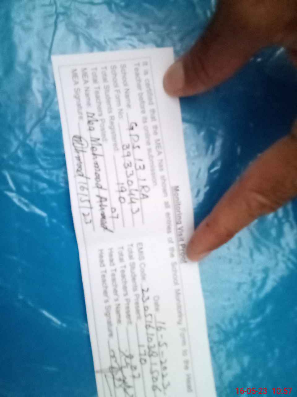 | Attendance Register | Head Teacher | MEA with School | Visit Proof |